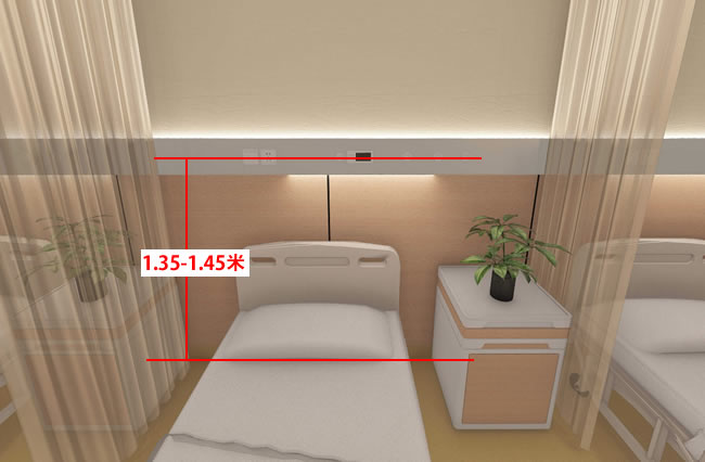 條帶型式的醫(yī)用供應(yīng)裝置中心線的安裝高度距地面宜為1350mm?1450mm,