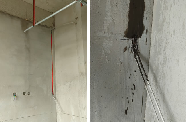 明管加裝飾罩的中心供氧管道安裝方式很好理解,根據(jù)醫(yī)用氣體工程技術(shù)規(guī)范的要求,氣體管道是不允許預(yù)埋到墻里面的,其目的是預(yù)防墻體內(nèi)管道破裂漏氣以及考慮將來(lái)檢修維修方便。上方左圖為某縣級(jí)人民醫(yī)院病房裝修改造醫(yī)用氣體工程,病房?jī)?nèi)棚頂至設(shè)備帶中心供氧管道和中心負(fù)壓吸引管道采用明管裝飾罩的方式。右圖為某正常營(yíng)業(yè)中鄉(xiāng)鎮(zhèn)衛(wèi)生院中心供氧管道,和醫(yī)用中心負(fù)壓吸引管道天花板至設(shè)備帶的氣體管道安裝效果。